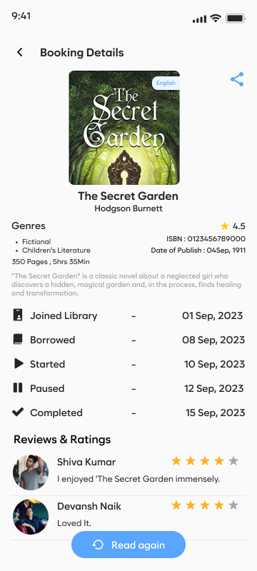 Mark each book as Reading, Paused, or Completed and maintain your own digital library of current and past reads.