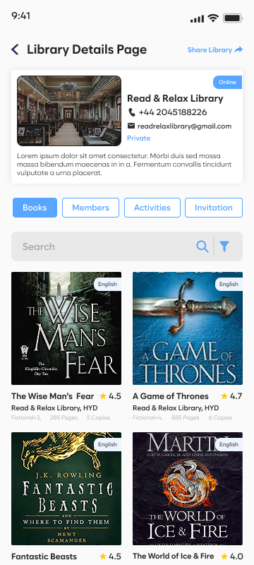 Discover libraries around you, browse their catalogues, check availability, and rent books directly through the app.