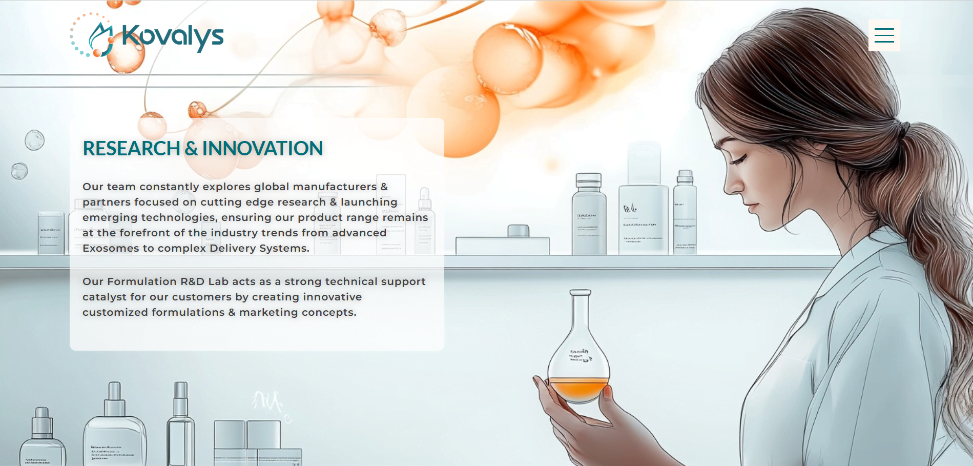 Designed and developed a modern WordPress website for Kovalys Sciences, a company specializing in innovative ingredient sourcing and formulation support for personal care and specialty products. The website reflects a balance of science, innovation, and global partnerships.