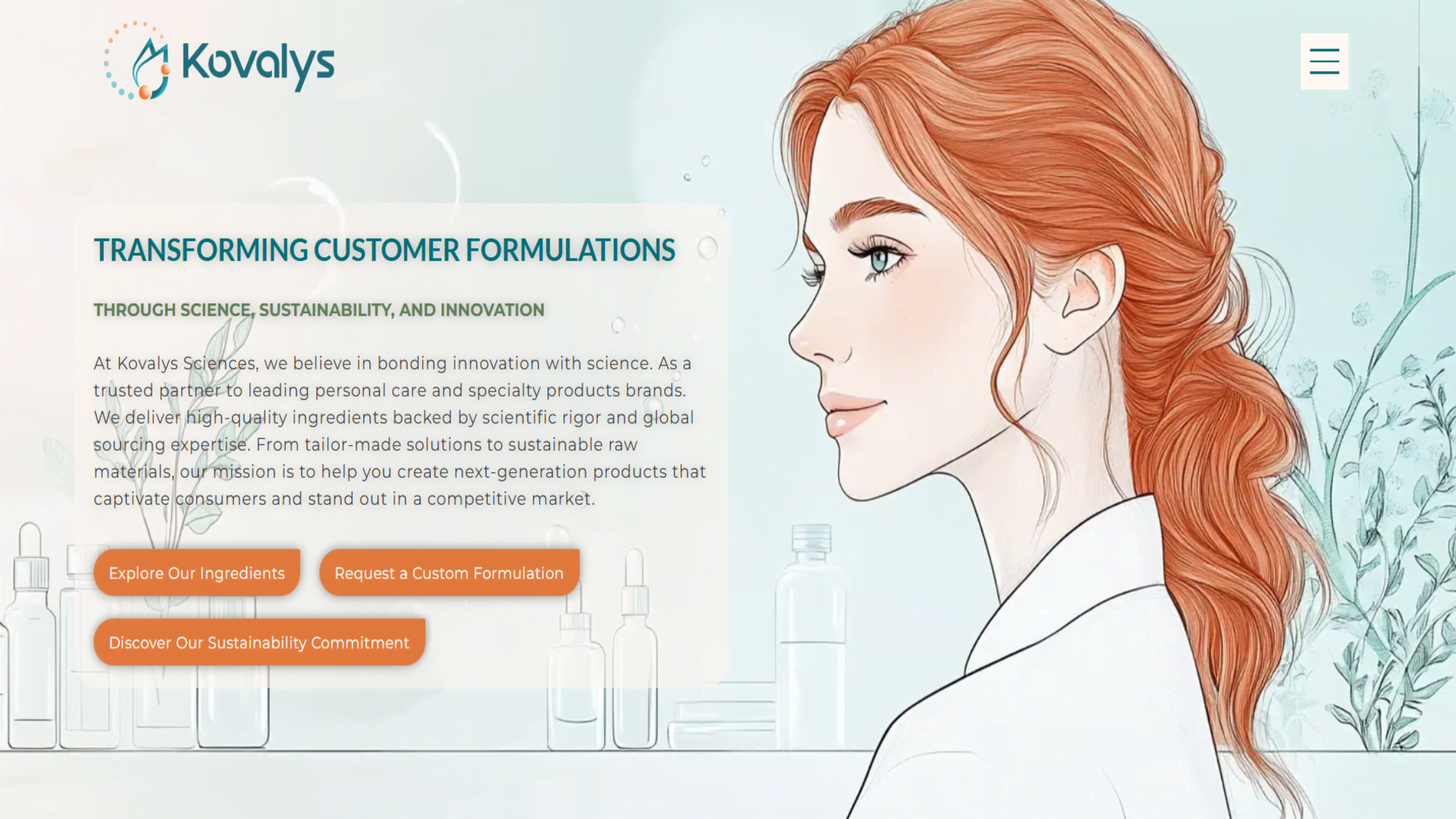 A high-end digital platform crafted for Kovalys Sciences, blending scientific precision with modern design to present advanced ingredient solutions.